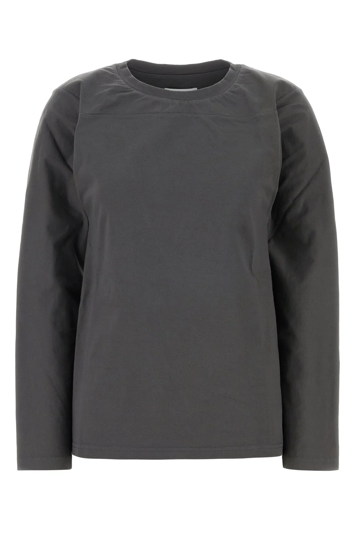 Long-sleeves t-shirt realized in pure cotton characterized by cut-out detail at the back. - Ribbed crew-neck DETAILS Dark grey cotton t-shirt Exterior: 100% Cotton Made in italy Sample size: S