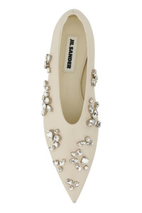 Ballerinas realized in pebble ovine leather enriched by rhinestones on the entire surface. - Pointed toe - Logoed label on the inside DETAILS Ivory leather ballerinas Exterior: 100% Ovine leather Interior: 100% Leather Sole: Leather Made in italy