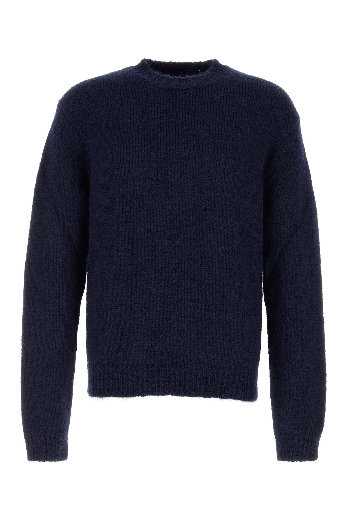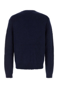 Sweater realized in alpaca blend. - Ribbed crew-neck, cuffs and hemline - Loose fit DETAILS Navy blue alpaca blend sweater Exterior: 81% Alpaca 16% Virgin wool 3% Nylon Made in italy Sample size: M