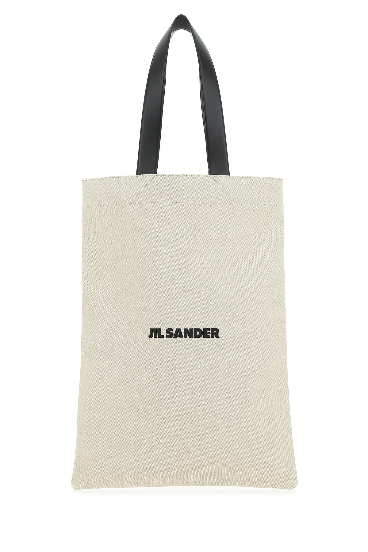 Shopping bag realized in cotton blend canvas characterized by contrasting printed logo at the front. - Two tonal leather flat handles - Unlined interior with three patch pockets DETAILS Exterior: 70% Cotton 30% Linen 100% Calf Made In Italy Width: 40 cm Height: 56 cm Handle height: 28 cm