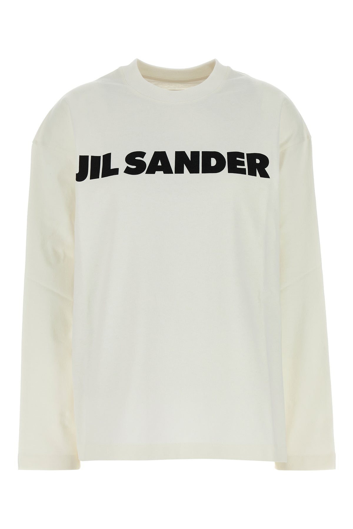 Oversize long-sleeves t-shirt realized in pure cotton characterized by contrasting printed logo on the chest. - Ribbed crew-neck DETAILS White cotton oversize t-shirt Exterior: 100% Cotton Made in italy Sample size: S