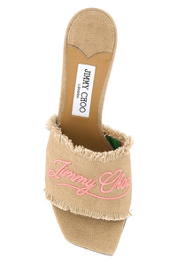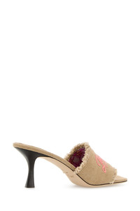 Mules realized in fabric characterized by contrasting embroidered logo on the instep. - Squared toe - Logoed label on the inside - Stiletto heel DETAILS Beige fabric Alexia 70 mules Exterior: 100% Fabric Interior: 100% Fabric Sole: Leather Made in italy Heel height: 7 cm