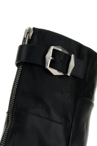 Ankle boots realized in polished-finish smooth calf leather. - Zip and adjustable strap closure at the back - Round toe - Logoed label on the inside - Thick heel DETAILS Black leather Brooklyn ankle boots Exterior: 100% Calf Interior: 100% Leather Sole: Rubber Made in italy Heel height: 5 cm