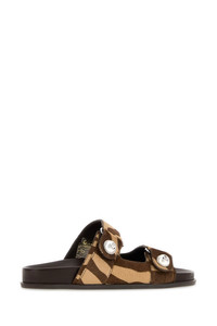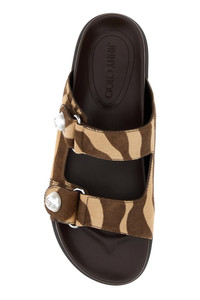 Faux pearl-embellished zebra-print calf hair sandals Chocolate