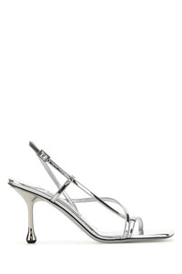 Sandals realized in laminated leather characterized by adjustable ankle strap closure. - Squared toe - Peculiar stiletto heel - Logoed label on the inside DETAILS Silver leather Etana 80 sandals Exterior: 100% Leather Interior: 100% Leather Sole: Leather Made in italy Heel height: 8 cm