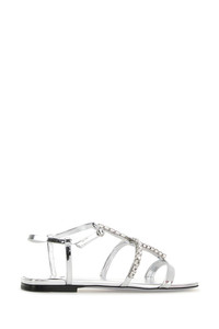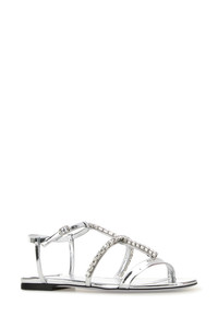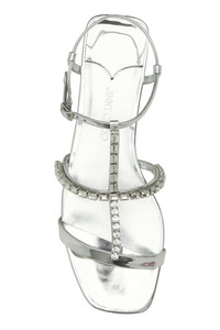 Sandals resized in laminated leather enriched by rhinestones on the instep. - Adjustable ankle strap closure - Squared toe - Embossed logo on the inside DETAILS silver leather Gwyn sandals Exterior: 100% Leather Interior: 100% Leather Sole: Leather Made in italy