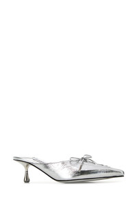 Mules realized in laminated pebble leather characterized by decorative lacing. - Pointed-cut toe - Logoed label on the inside - Stiletto heel DETAILS Silver leather Scarlett mules Exterior: 100% Leather Interior: 100% Leather Sole: Leather Made in italy Heel height: 5 cm