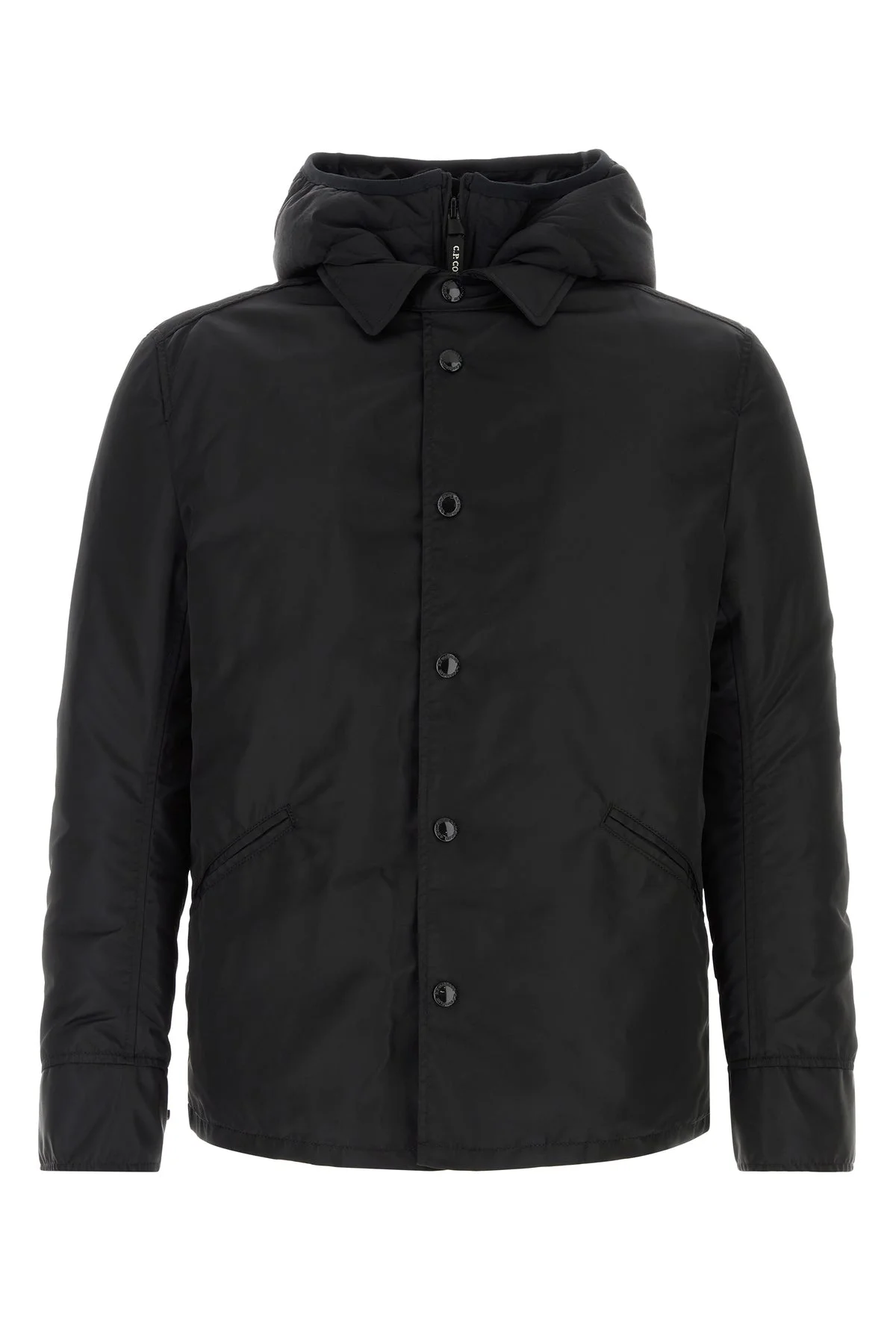 Down jacket created in collaboration with CP Company realized in nylon characterized by embroidered logo at the back enriched by patch on the hood. - Buttons closure - Two slit pockets at the front - Adjustable straps by buttons - Detachable lining and padding DETAILS Black nylon Junya Watanabe x CP Company down jacket Exterior: 100% Nylon Lining: 100% Fabric Padding: 90% Down 10% Feather Made in japan Sample size: M