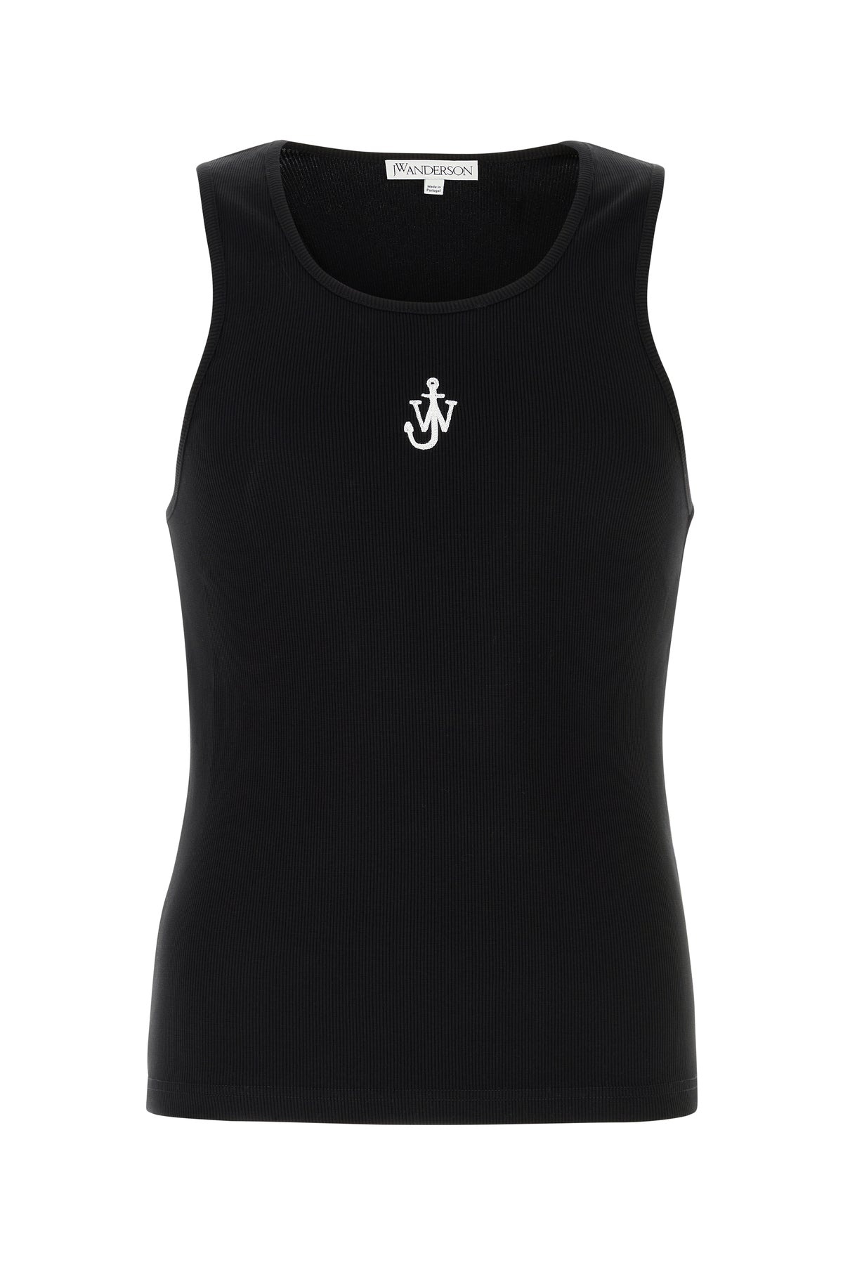 Tank top realized in ribbed pure cotton characterized by contrasting Anchor JWA embroidery at the front. - Deep round neckline DETAILS Black cotton tank top Exterior: 100% Cotton Made in portugal Sample size: M