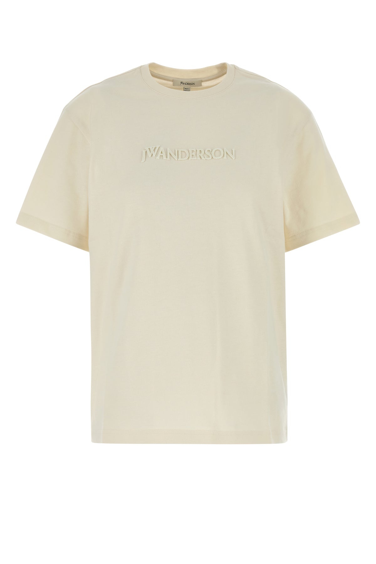 T-shirt realized in pure cotton characterized by flocked printed logo on the chest. - Ribbed crew-neck DETAILS Cream cotton t-shirt Exterior: 100% Cotton Made in portugal Sample size: XS