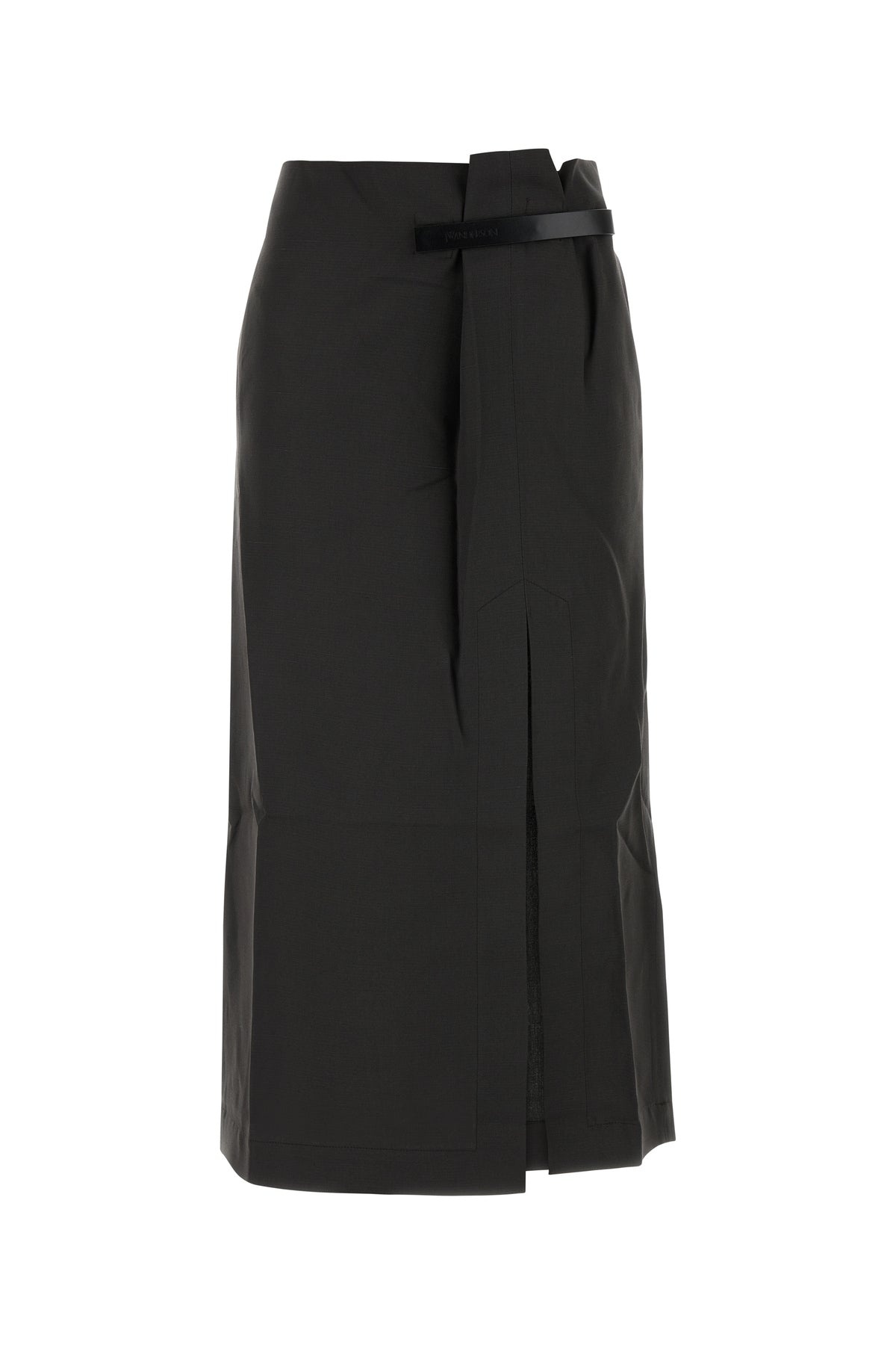 Skirt realized in viscose and silk characterized by logoed leather strap closure. - Central slit at the front - Unlined DETAILS Graphite viscose blend skirt Exterior: 99% Viscose 1% Silk Made in Sample size: 6