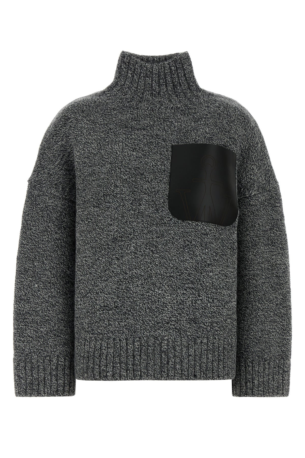 Sweater realized in wool blend characterized by Anchor embroidery at the back enriched by leather chest pocket with Anchor motif. - Funnel neck - Drop shoulders - Ribbed cuffs and hemline - Loose fit DETAILS Melange grey wool blend sweater Exterior: 45% Wool 38% Alpaca 17% Acrylic Made in china Sample size: XS