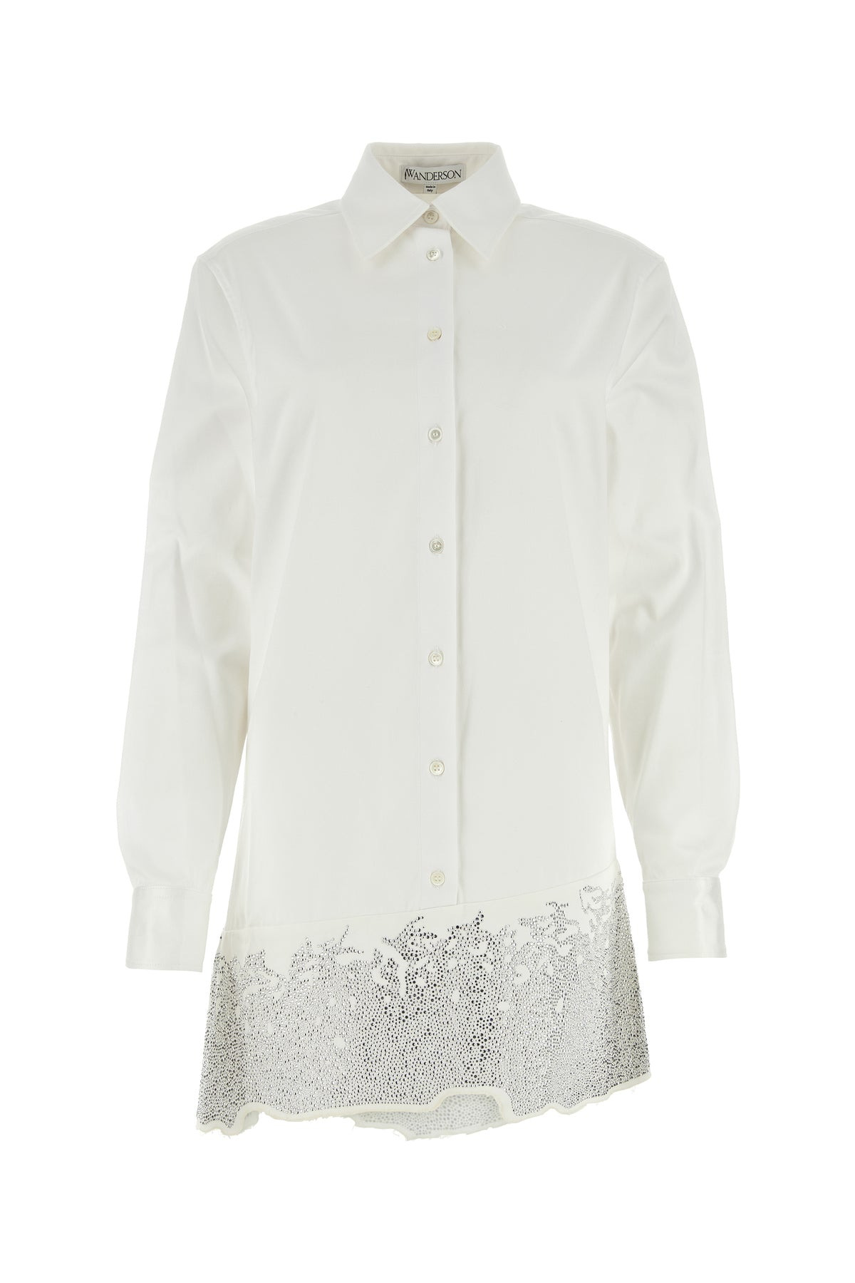 Mini shirt dress realized in pure cotton enriched by denim insert with rhinestones on the hemline. - Pointed collar - Buttons closure - Buttoned cuffs - Distressed hemline - Unlined DETAILS Exterior: 100% Cotton Made In Italy Sample size: 6