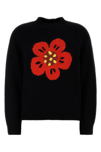 Sweater realized in cotton blend characterized by Bone Flower embroidery at the front and Kenzo Paris embroidery at the back. - Ribbed crew-neck, cuffs and hemline DETAILS Black cotton blend sweater Exterior: 71% Cotton 28% Wool 1% Nylon Made in china Sample size: XS