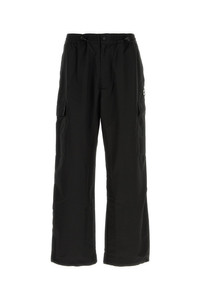 Cargo pant realized in nylon blend enriched by logoed patch at the front. - Elastic waist with drawstring - Concealed zip and single visibile button closure - Slant pockets and two zip pockets at the back DETAILS Black nylon blend cargo pant Exterior: 52% Nylon 48% Polyester Made in tunisia Sample size: M