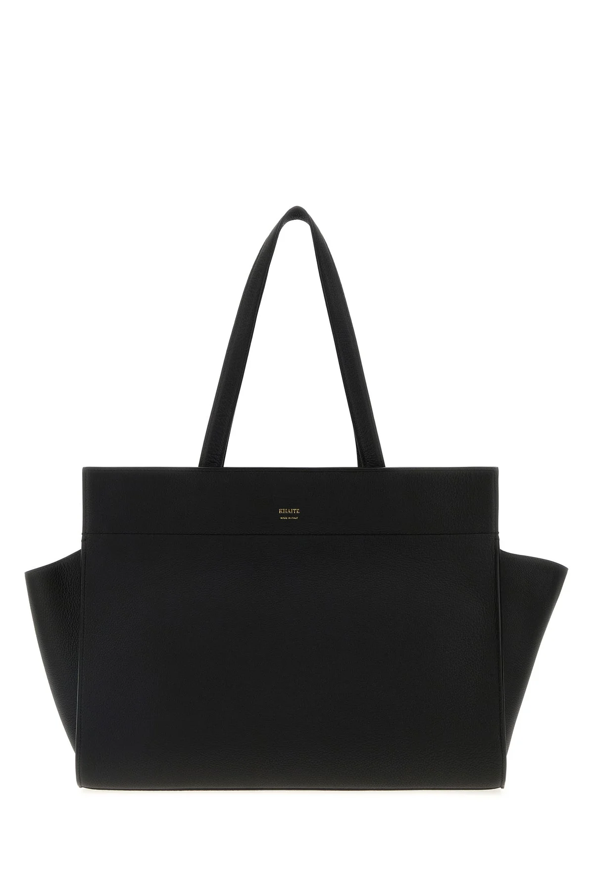 Handbag realized in pebble leather characterized by laminated printed logo at the front. - Two tonal leather flat handles - Zip closure - Suede interior with a detachable leather pouch DETAILS Black leather Crosby handbag Exterior: 100% Leather Lining: 100% Suede Finishing: Golden metal Made in italy Width: 38 cm Height: 21,5 cm Depth: 21,5 cm Handle height: 24 cm