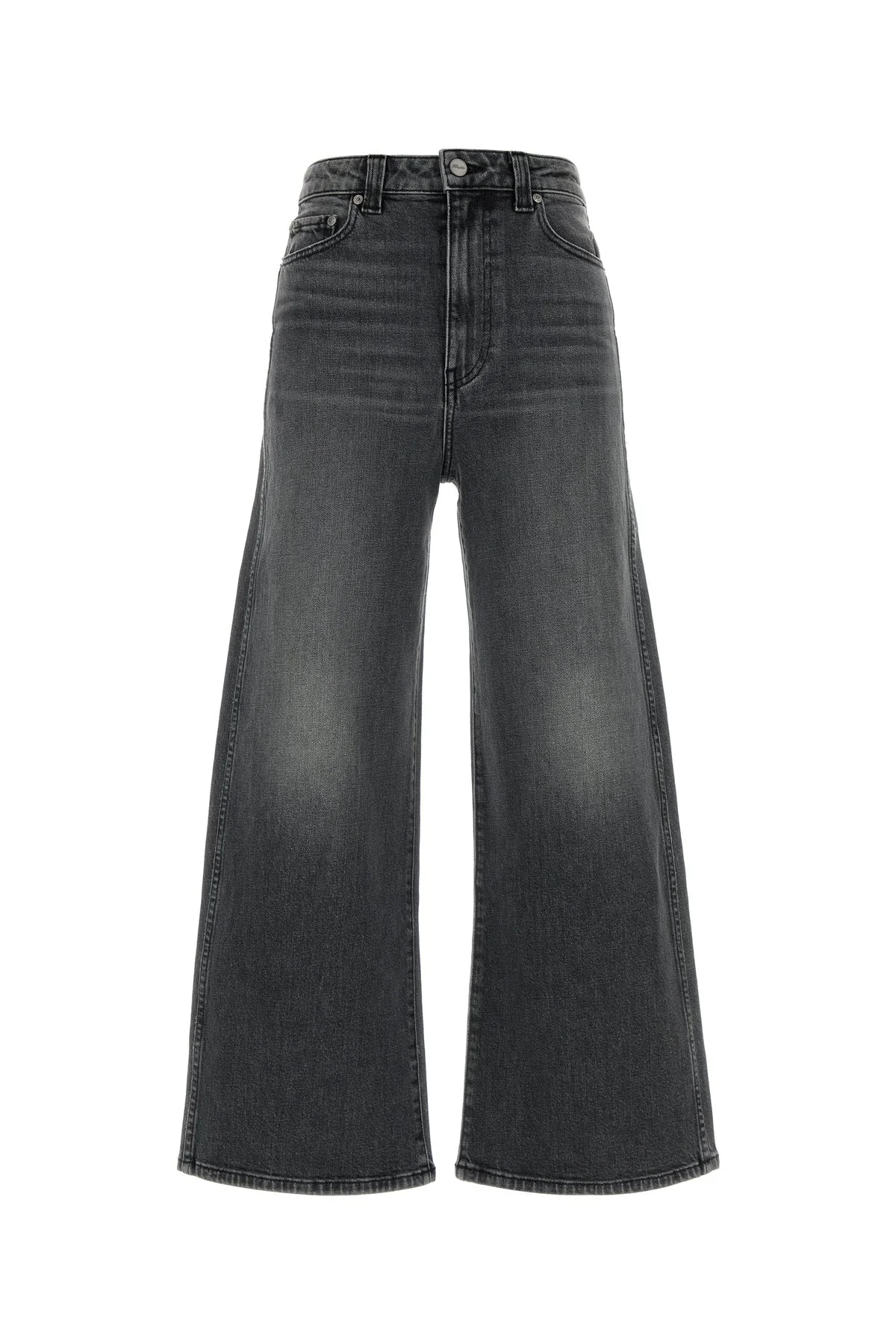 Wide-leg jeans realized in stonewashed stretch cotton denim. - Belt loops at the waist - Concealed zip and a single visible button closure - Five classic pockets DETAILS Black stretch denim Delina jeans Exterior: 99% Cotton 1% Elastane Made in usa Sample size: 26