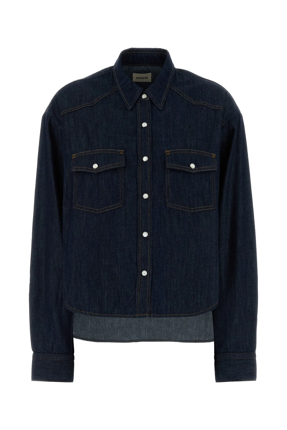Shirt realized in pure organic cotton denim characterized by lateral slits on the hemline. - Short-pointed collar - Buttons closure - Two chest pockets - Angle cuffs with buttons - Rear yoke - Slightly longer back DETAILS Denim Grenon shirt Exterior: 100% Organic cotton Made in usa Sample size: XS