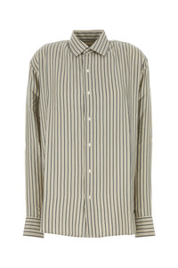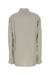Oversize shirt realized in pure silk characterized by striped embroidery on the entire surface. - Short-pointed collar - Buttons closure - Buttoned rounded cuffs - Rear yoke DETAILS Embroidered silk oversize Songino shirt Exterior: 100% Silk Made in france Sample size: OS