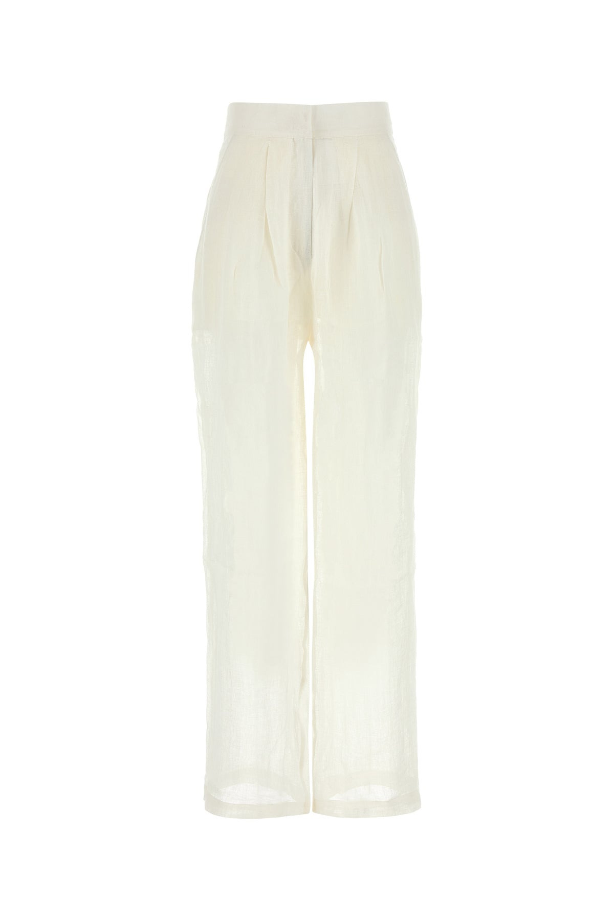 Wide-leg pant realized in pure organic linen characterized by inverted pleats. - Adjustable straps at the waist - Concealed zip and hooks closure - Slant pockets and two slit pockets at the back DETAILS White linen Sohag wide-leg pant Exterior: 100% Organic linen Made in france Sample size: XS