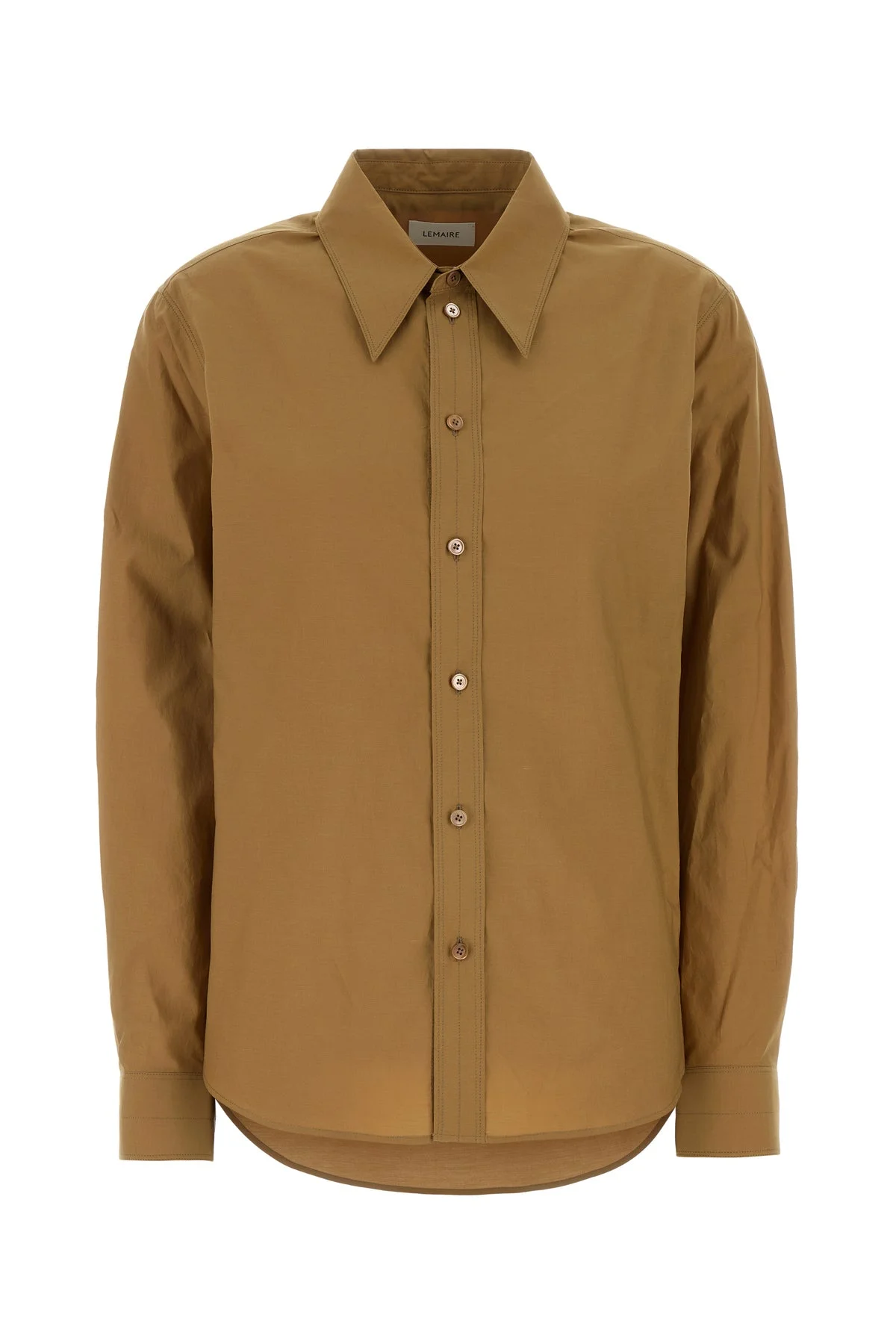 Shirt realized in pure cotton poplin. - Italian collar - Buttons closure - Buttoned angle-cut cuffs - Rear yoke and rear placket DETAILS Camel poplin shirt Exterior: 80% Cotton 20% Silk Made in lithuania Sample size: 38
