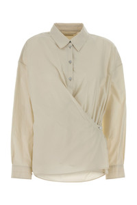 Shirt realized in cotton and stilk characterized by twisted closure by buttons. - Short-pointed collar - Buttoned angle-cut cuffs - Rear yoke DETAILS Ivory cotton blend shirt Exterior: 80% Cotton 20% Silk Made in portugal Sample size: 38