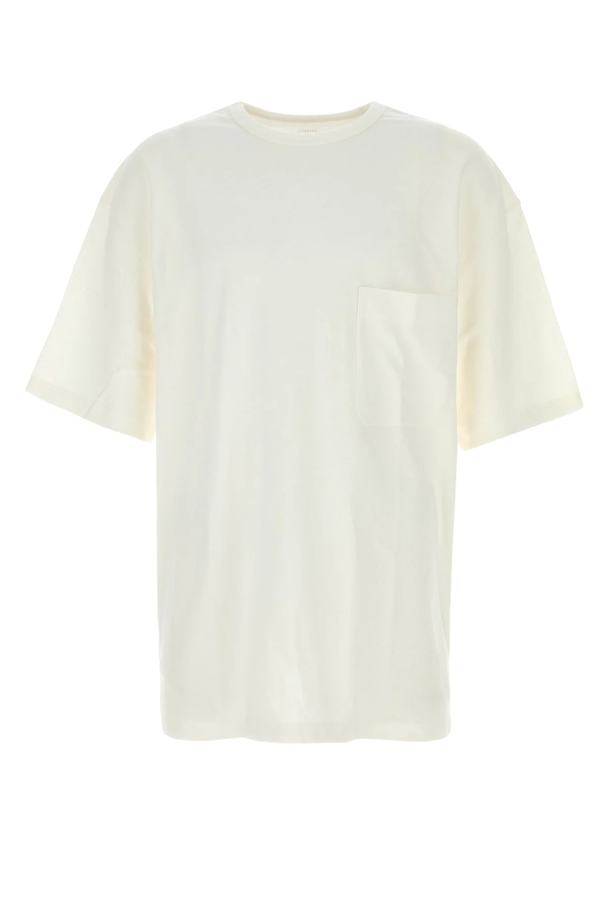Oversize t-shirt realized in cotton and silk enriched by a chest pocket. - Ribbed crew-neck - Lateral slits on the hemline DETAILS White cotton blend Boxy oversize t-shirt Exterior: 70% Cotton 30% Silk Made in portugal Sample size: M