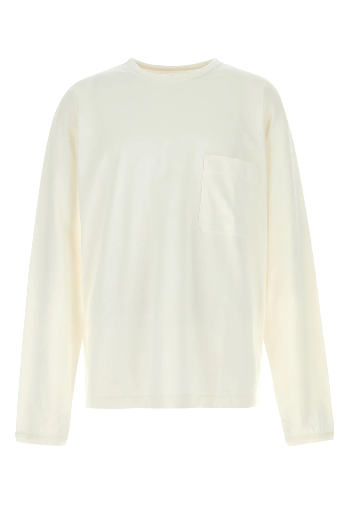 Long-sleeves t-shirt realized in pure cotton enriched by a chest pocket. - Ribbed crew-neck and cuffs - Lateral slits on the hemline - Loose fit DETAILS White cotton t-shirt Exterior: 100% Cotton Made in portugal Sample size: M