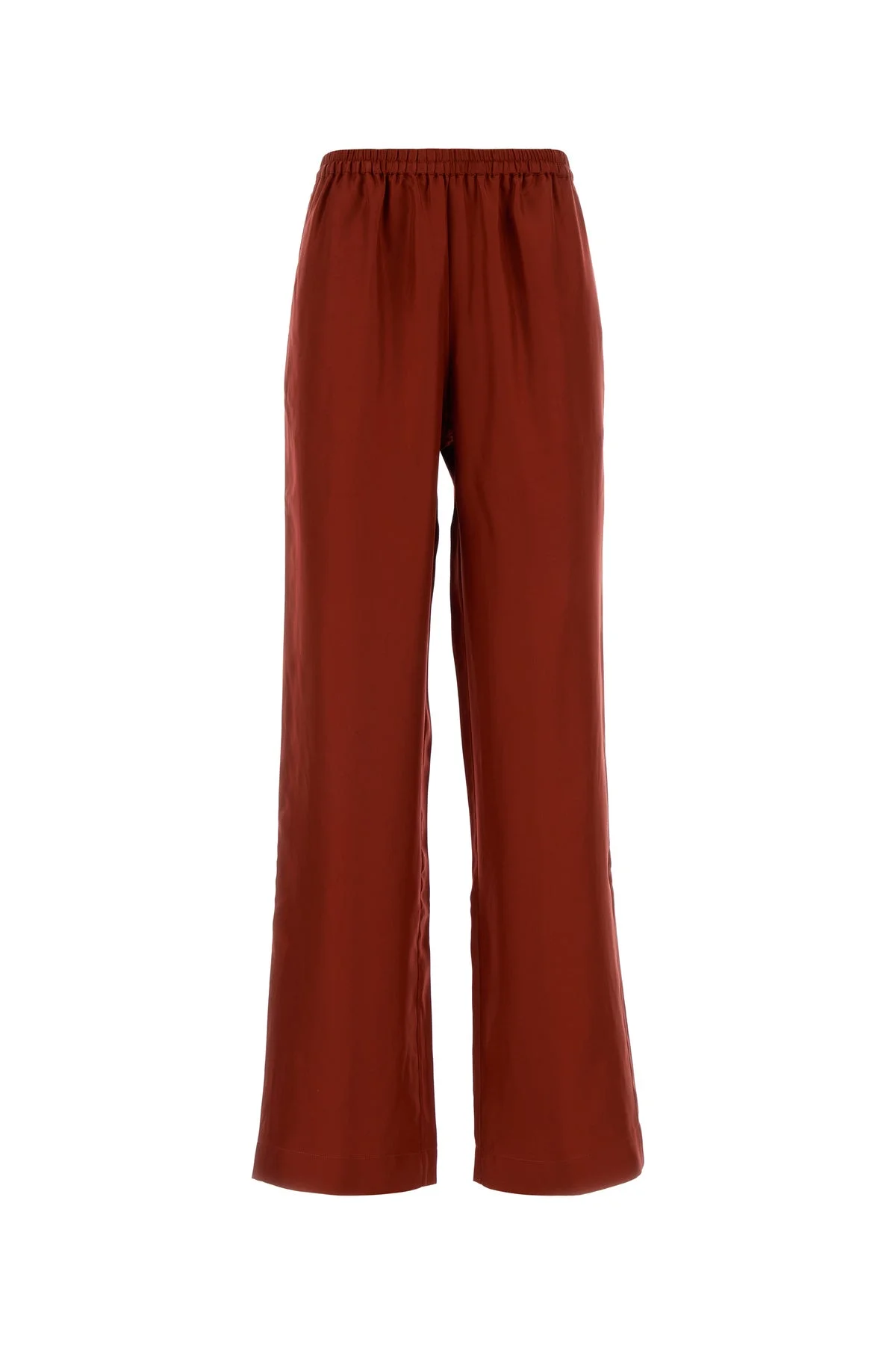 Palazzo pant realized in pure silk satin. - Elastic waist - Slant pockets and a patch pocket at the back DETAILS Brick satin Alera palazzo pant Exterior: 100% Silk Made in italy Sample size: S
