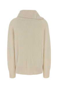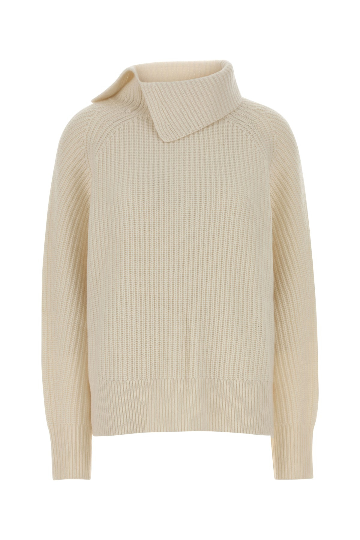 Sweater realized in pure cashmere characterized by high collar. - Ribbed cuffs and hemline - Lateral slits on the hemline - Loose fit DETAILS Ivory cashmere Cecil sweater Exterior: 100% Cashmere Made in china Sample size: XS