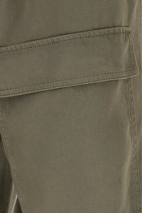 Cargo pant realized in lyocell characterized by elastic waist with inner drawstring. - Adjustable straps at the waist - Concealed zip and single visible button decorative closure - Seam pockets and two flap pockets at the front - Drawstring on the hemline DETAILS Army green lyocell cargo pant Exterior: 100% Lyocell Lining: 100% Cotton Made in italy Sample size: M