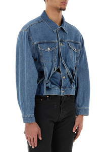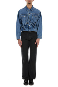 Jacket realized in pure cotton denim characterized by peculiar weaving with cut-out details on the hemline. - Pointed collar - Buttons closure - Two flap pockets at the front - Buttoned cuffs - Adjustable straps on the hemline - Unlined DETAILS Denim Livello jacket Exterior: 100% Cotton Made in italy Model is 190 cm and is wearing a size M