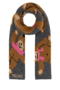 Scarf realized in wool blend characterized by Bears embroidery on the entire surface. DETAILS Embroidered wool blend scarf Exterior: 70% Wool 30% Nylon Made in italy Width: 156 cm Height: 19 cm