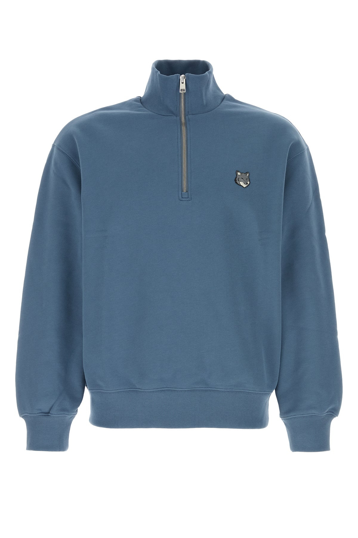 Sweatshirt realized in pure cotton enriched by Fox Head patch on the chest. - High collar - Partial zip closure - Ribbed cuffs and hemline DETAILS Air Force blue cotton sweatshirt Exterior: 100% Cotton Made in portugal Sample size: 3