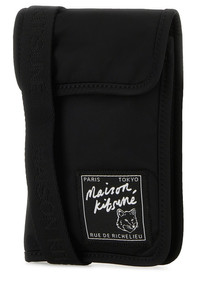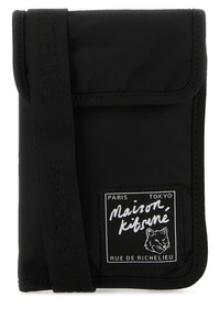 Phone case realized in nylon enriched by Maison Kitsuné Richelieu label at the front. - Adjustable tonal fabric shoulder strap - Buttons closure under the flap - Lined interior with a zip pocket DETAILS Exterior: 100% Nylon Lining: 100% Nylon Finishing: Silver metal Made In China Width: 12 cm Height: 18 cm Depth: 2 cm Min shoulder strap length: 30 cm Max shoulder strap length: 55 cm