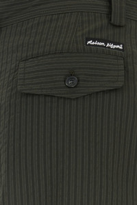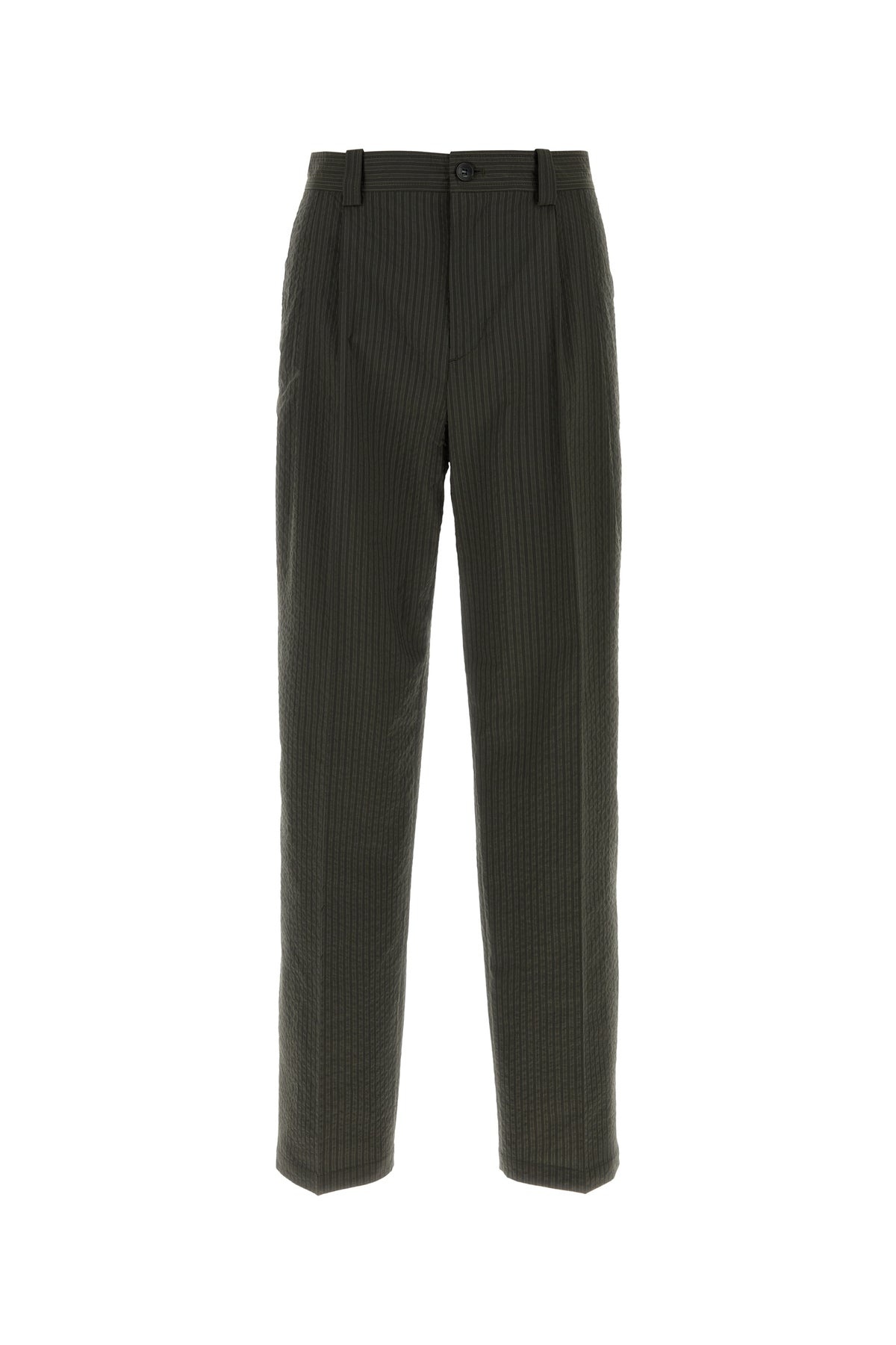 Pant realized in polyester blend characterized by strode embroidery on the entire surface enriched by logoed label at the back. - Belt loops at the was it - Concealed zip and single visible button closure - Seam pockets and two flap pockets at the back - Inverted pleats DETAILS Embroidered polyester blend pant Exterior: 76% Polyester 24% Cotton Made in romania Sample size: 38