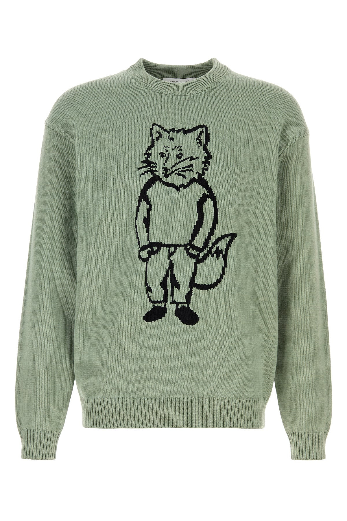 Sweater realized in cotton blend characterized by Fox embroidery at the front. - Ribbed cuffs and hemline - Embroidered logo at the back DETAILS Mint green cotton blend sweater Exterior: 70% Cotton 30% Nylon Made in china Sample size: M
