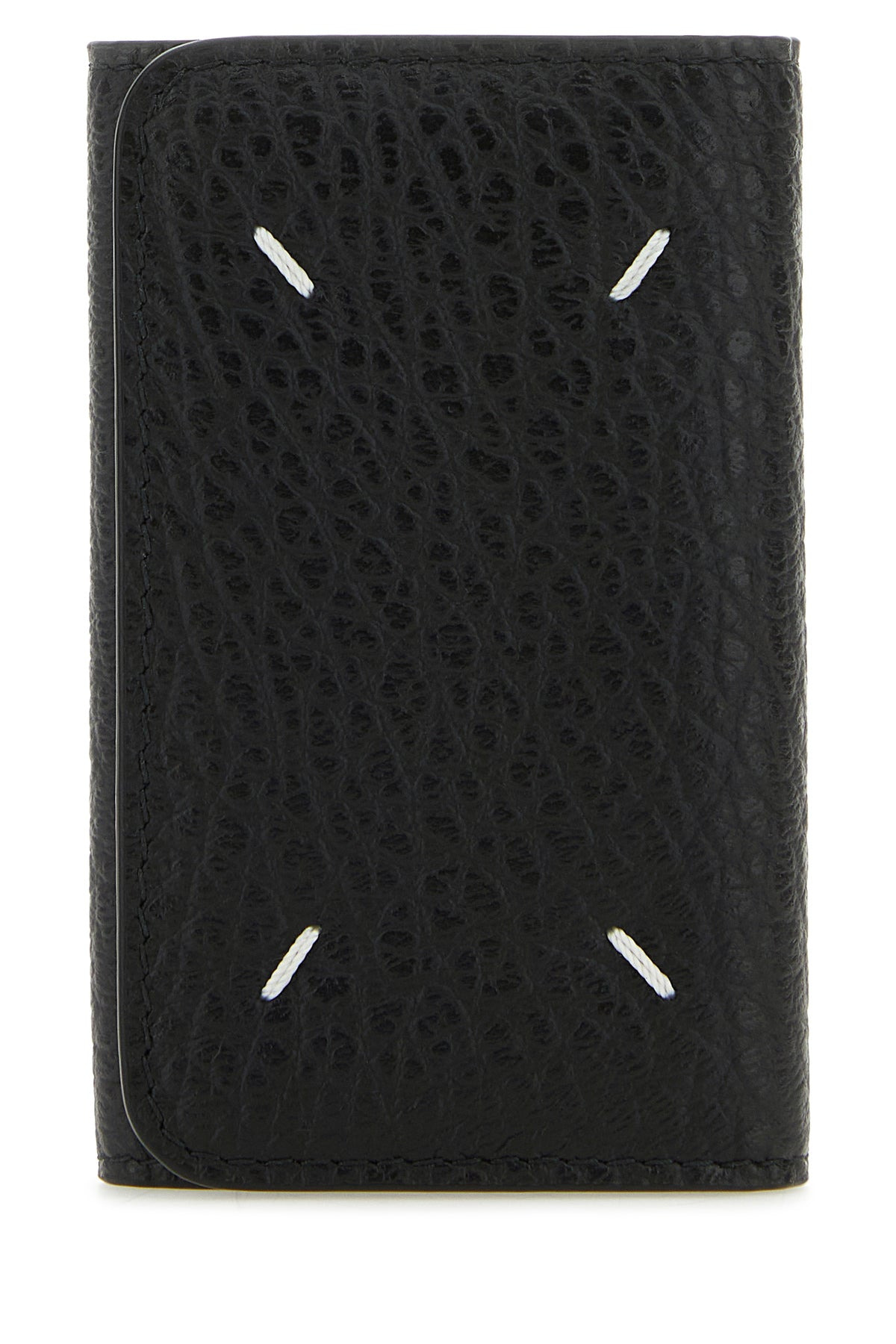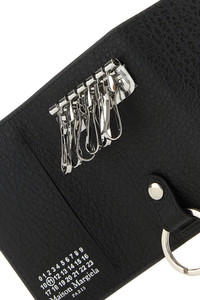 Keyring case realized in pebble calf leather characterized by iconic contrasting stitchings at the front. - Snap button closure - Six key ring hooks and a key ring - Slot for address tag DETAILS Exterior: 100% Calf Made In Italy Width: 10,5 cm Height: 7 cm Depth: 1,5 cm