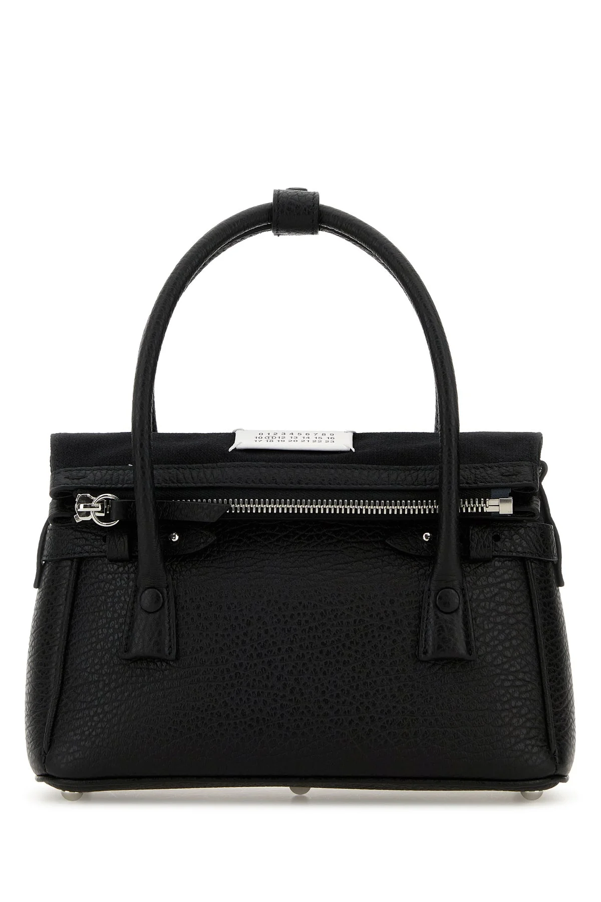 Handbag realized in pebble leather with fabric insert at the top characterized by iconic contrasting stitching at the front enriched by logoed label at the top. - Two leather round handles - Adjustable detachable tonal leather shoulder strap - Zip closure - Lined - Protective metal feet at the base DETAILS Black leather handbag Exterior: 100% Leather Lining: 100% Fabric Finishing: Silver metal Made in italy Width: 23 cm Height: 21 cm Depth: 9 cm Handle height: 6 cm Min shoulder strap length: 30 cm Max shoulder strap length: 50 cm