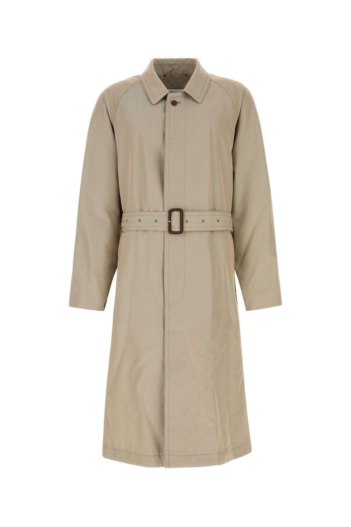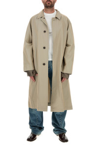 Trench coat realized in cotton blend with contrasting inserts on the cuffs characterized by iconic contrasting stitchings at the back. - Collar - Concealed buttons closure - Tonal fabric belt at the waist - Two slit pockets at the front - Straps on the cuffs DETAILS Charcoal cotton blend trench coat Exterior: 65% Cotton 35% Polyester Made in italy Model is 185 cm and is wearing a size 48