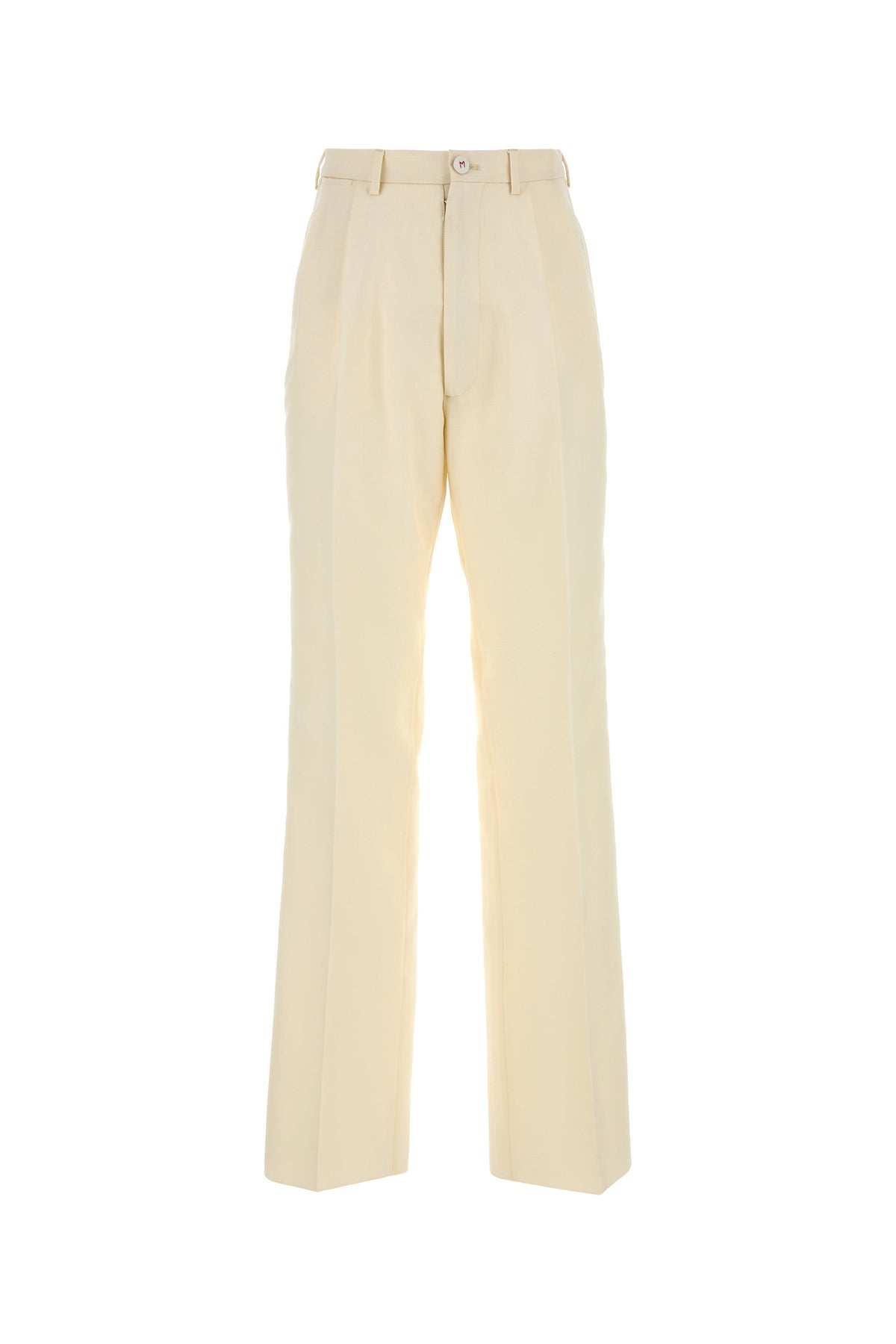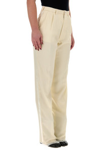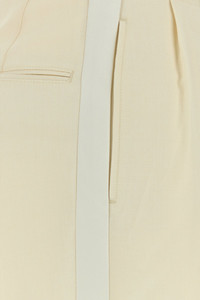 Pant realized in mohair and silk characterized by contrasting bands on the sides. - Belt loops at the waist - Concealed zip and single visible button closure - Seam pockets and two slit pockets at the back - Inverted pleats DETAILS Cream mohair blend pant Exterior: 80% Mohair 20% Silk Made in italy Model is 174 cm and is wearing a size 42