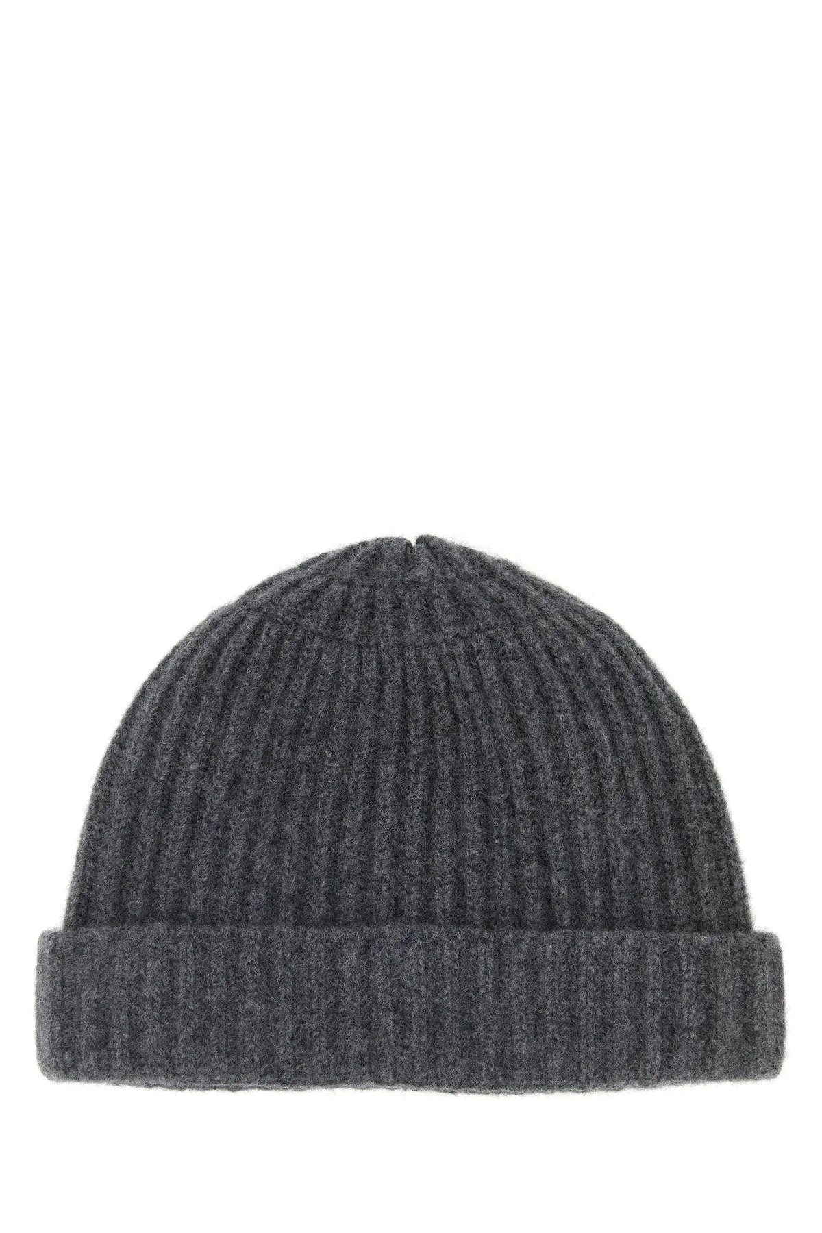 Beanie hat realized in pure virgin wool characterized by iconic contrasting stitching at the back. - Foldable hemline - Unlined DETAILS Dark grey wool beanie hat Exterior: 100% Virgin wool Made in italy
