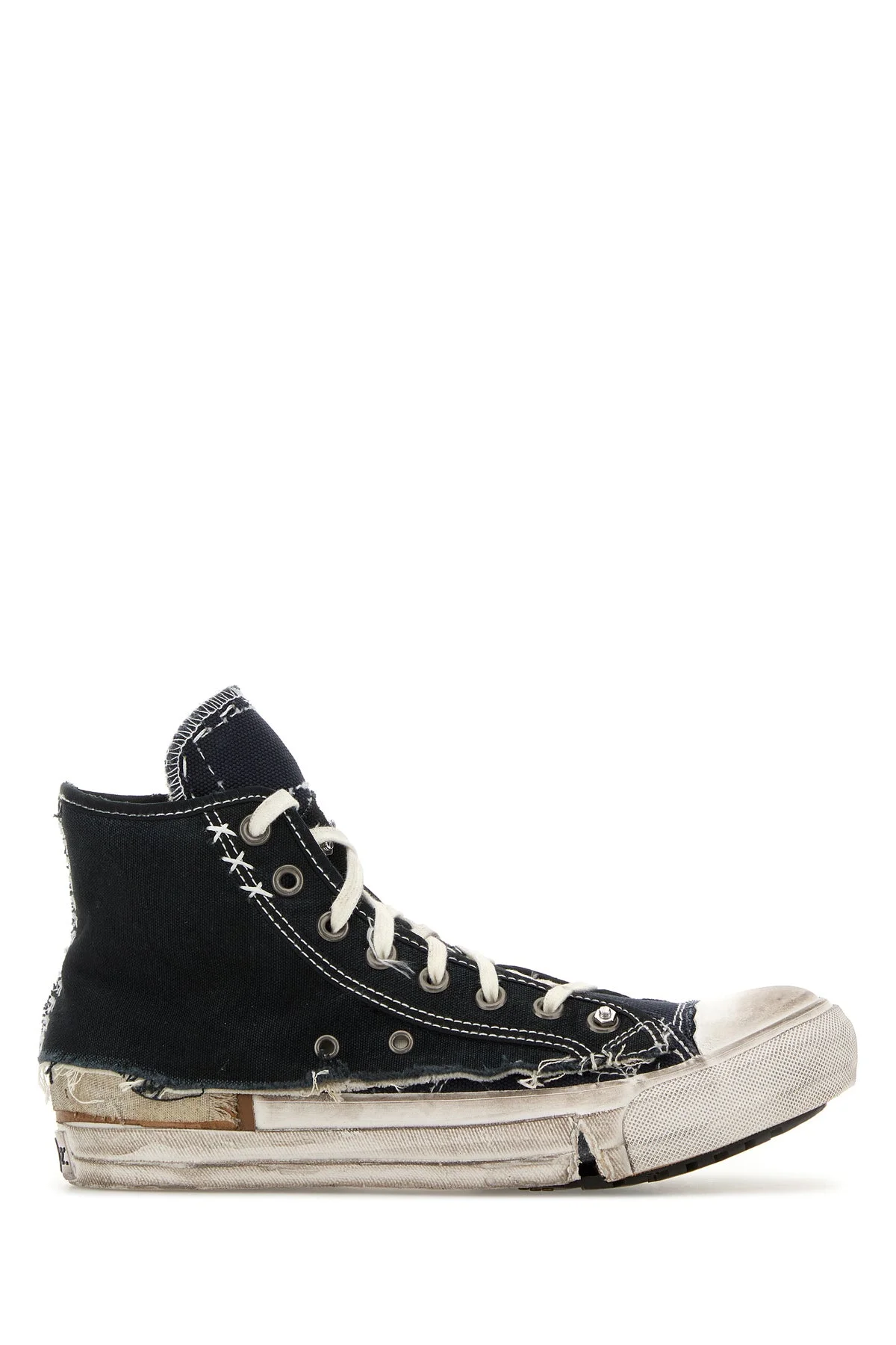 High-top sneakers realized in distressed effect canvas enriched by logoed patch at the back. - Lace-up closure - Vintage effect rubberized toe - Embossed logo on the inside DETAILS Midnight blue canvas Loved to Death sneakers Exterior: 100% Cotton Interior: 100% Cotton Sole: Rubber Made in italy