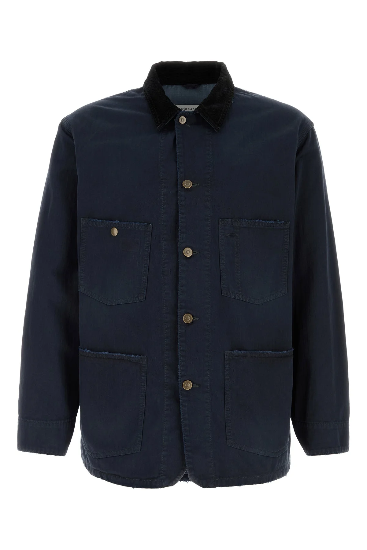 Jacket realized in pure cotton characterized by iconic contrasting stitchings at the back. - Corduroy collar - Buttons closure - Two chest pockets and two patch pockets at the front - Buttoned cuffs - Unlined DETAILS Midnight blue cotton jacket Exterior: 100% Cotton Made in italy Sample size: 48
