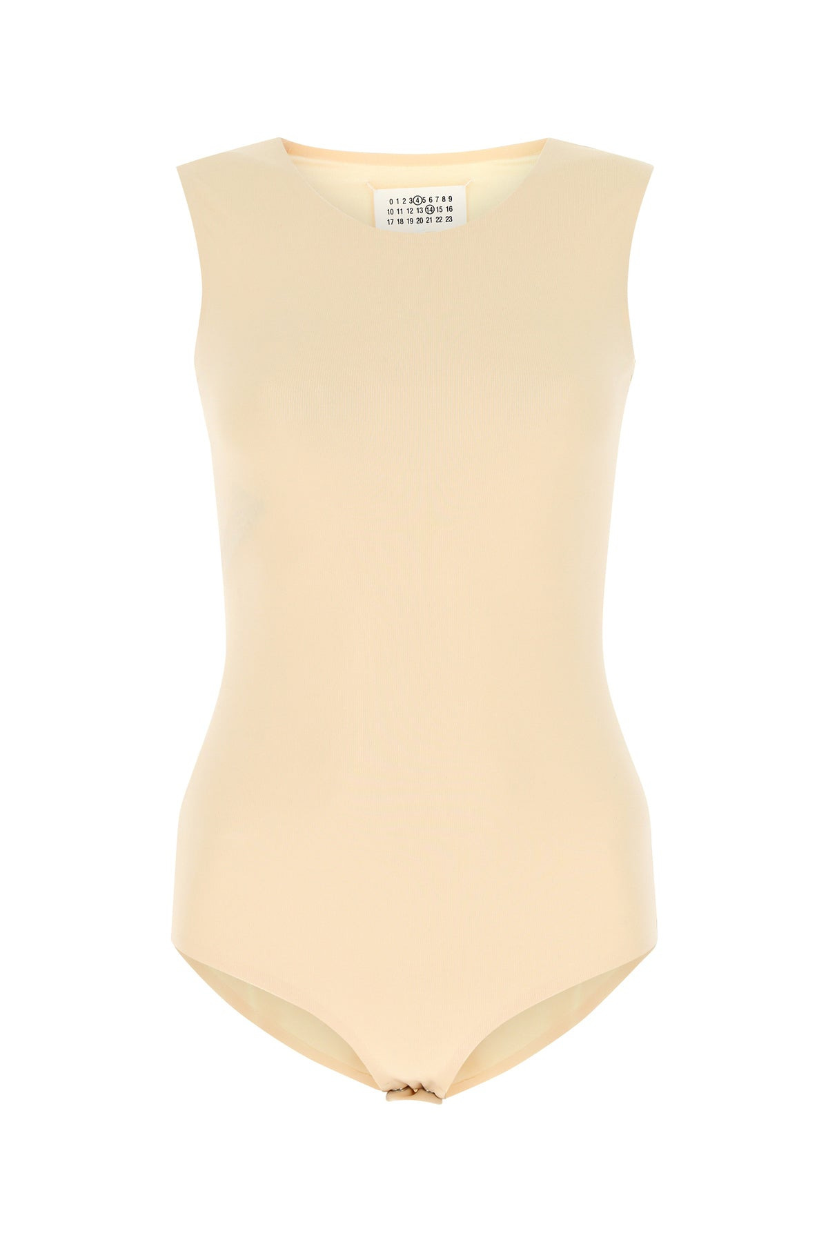 Bodysuit realized in stretch viscose characterized by contrasting stitchings at the back. - Round neckline - Sleeveless - Concealed snap buttons closure on the hemline DETAILS Exterior: 96% Viscose 4% Elastane Made In Italy Sample size: 38
