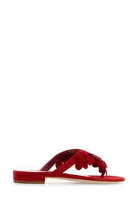 Thong slippers realized in suede enriched by tonal suede details on the entire surface. - Round toe - Logoed label on the inside DETAILS Red suede Tamako thong slippers Exterior: 100% Suede Interior: 100% Leather Sole: Leather Made in italy
