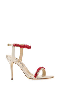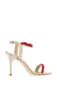 Sandals realized in satin enriched by contrasting peculiar details at the front and at the ankle. - Adjustable ankle strap closure - Round toe - Logoed label on the inside - Stiletto heel DETAILS Exterior: 100% Fabric Interior: 100% Leather Sole: Leather Made In Italy Heel height: 9 cm