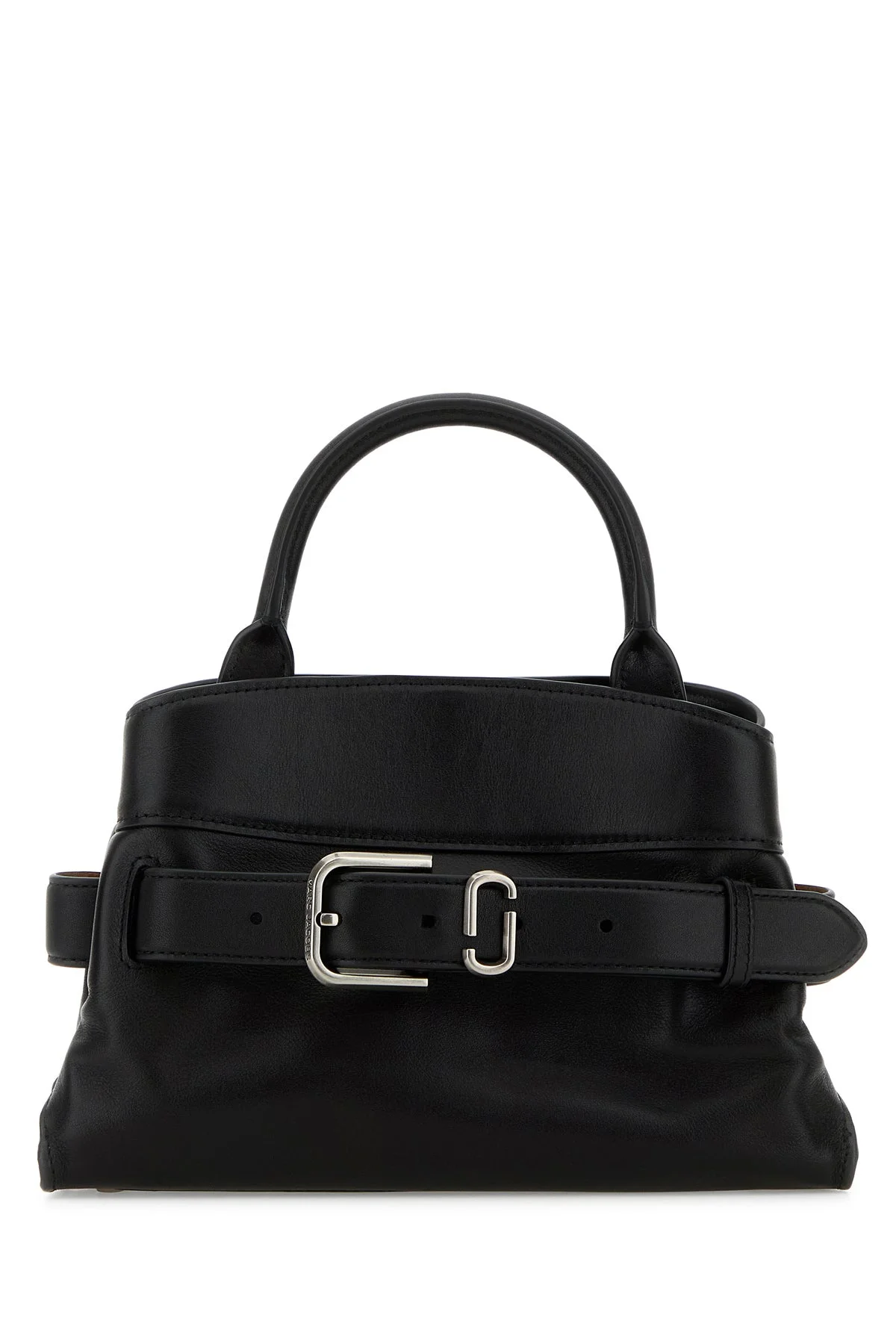 Handbag realized in slightly pebble leather characterized by embossed logo at the back. - A leather round handle - Magnetic button closure - Adjustable tonal leather strap - Protective metal feet at the base DETAILS Black leather small Satchel handbag Exterior: 100% Leather Lining: 100% Fabric Finishing: Silver metal Made in Width: 27 cm Height: 17 cm Depth: 11 cm Handle height: 11 cm Min shoulder strap length: 42 cm Max shoulder strap length: 62 cm