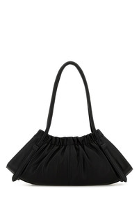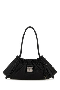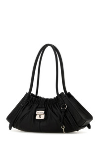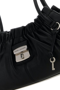 Shoulder bag realized in lamb leather enriched by metal logoed detail at the front and detachable accessory. - Two tonal leather round handles - Zip closure - Lined interior with a zip pocket DETAILS Black leather The Cristina shoulder bag Exterior: 100% Lamb Lining: 100% Fabric Finishing: Silver metal Made in vietnam Width: 43 cm Height: 16,5 cm Depth: 11 cm Handle height: 26 cm