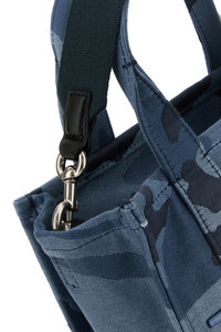 Handbag realized in canvas characterized by camouflage motif print on the entire surface and logoed embroidery at the front enriched by logoed patch at the back. - Two flat fabric handles - Adjustable detachable fabric shoulder strap - Zip closure - Lined interior DETAILS Printed canvas small The Tote Bag handbag Exterior: 100% Fabric Lining: 100% Fabric Finishing: Silver metal Made in Width: 25 cm Height: 22 cm Depth: 9 cm Handle height: 10,5 cm Min shoulder strap length: 42 cm Max shoulder strap length: 67 cm